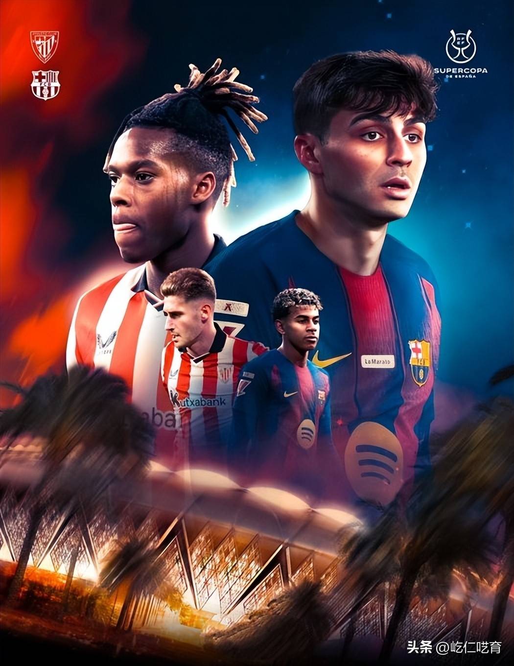 在超级杯的赛场,从09年至今双方有过6次交锋,巴萨3胜2平1负、而21年的超级杯也是最终加时2-3所惜败。